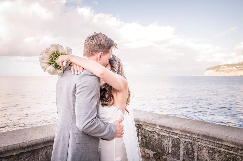 wedding services booked: Love in Italy Package, Symbolic Ceremony with guests (elopement), Ceremony @ a Public Panoramic Terracei n Sorrento | Wedding Celebrant, Sunset Wedding Photography at the ceremony followed by Sorrento’s Cloister and Sorrento town, Wedding flowers, Hair & Make up, Wedding Vintage fiat 500 Car | Elope in Sorrento
